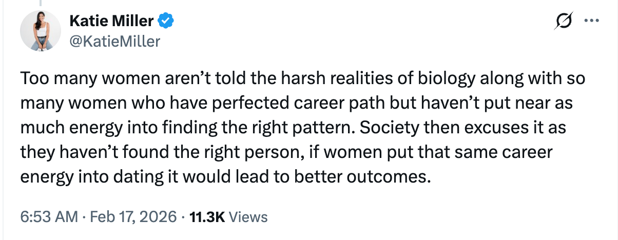 Katie Miller is right that if you focus on settling, you can probably find someone to marry at any age. Maybe that’s how she wound up married to Stephen Miller.
